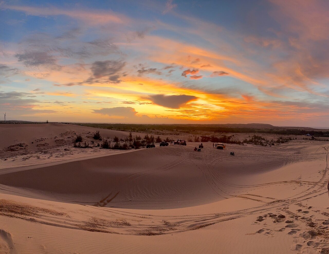 Mui Ne Tourist Beach is also known as a paradise for relaxation.It boasts hundreds of eco- resorts,beach villas,and luxurious retreats that blend the unspoiled beauty of nature with modern architectural elegance.In recent years,international travel media have consistently ranked this destination highly.The Canadian Traveler listed Mui Ne as one of the top two most beautiful beaches in Southeast Asia in 2014,while Skyscanner ranked it among the top 10 impressive beaches of Asia-Pacific. Explore Muine Tourist Beach-Must see places in the paradise of blue sea,white sand.Muine promises to offer you an unforgettable vacation.Let’s discover for must-visit places right aways: White Sand Dunes,Red Sand Dunes,Fishing Village,Fairy Stream By Classical USA Jeep.